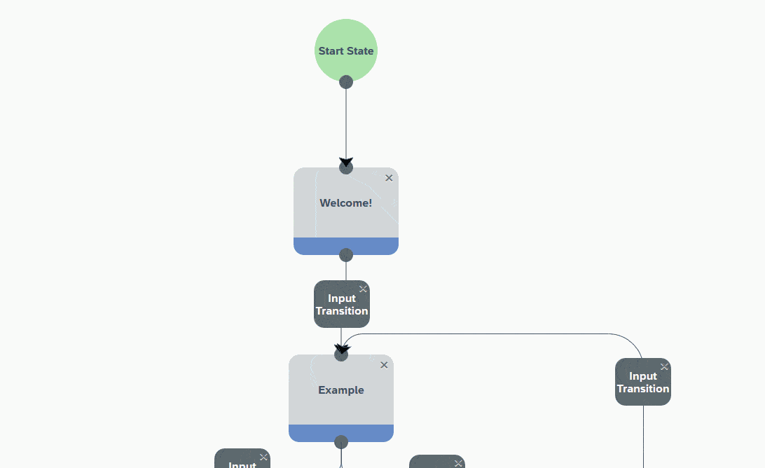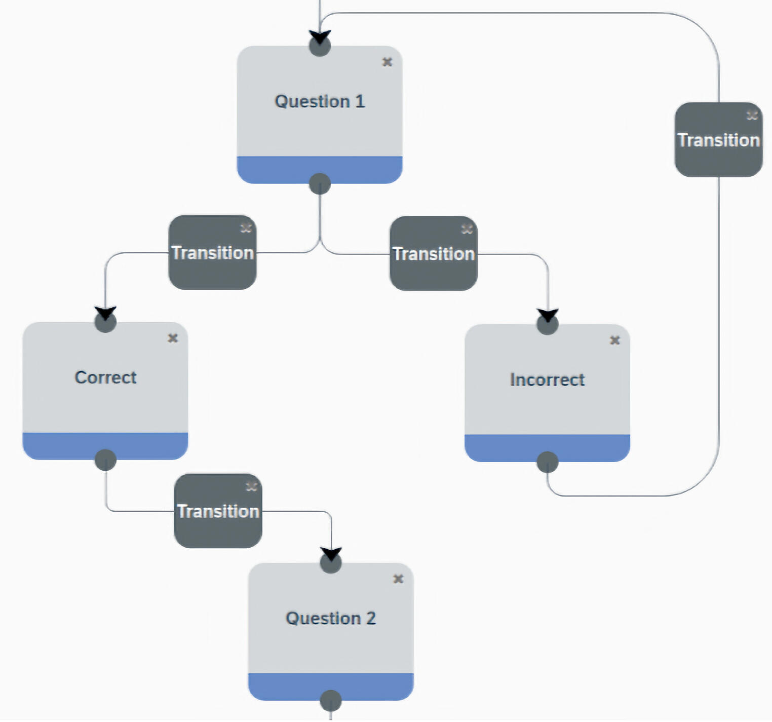 • When building a game, fill in the states and transitions as you add them to the builder. We do not recommend adding all the game elements at once to see the structure and then going back to fill in all the game elements after.